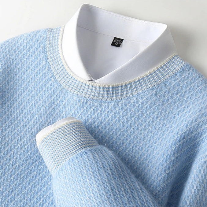Crafted from soft cashmere, the Alviani Sweater features a subtle textured knit and contrast trim for a refined finish. Lightweight yet warm, it’s designed for effortless layering across seasons.