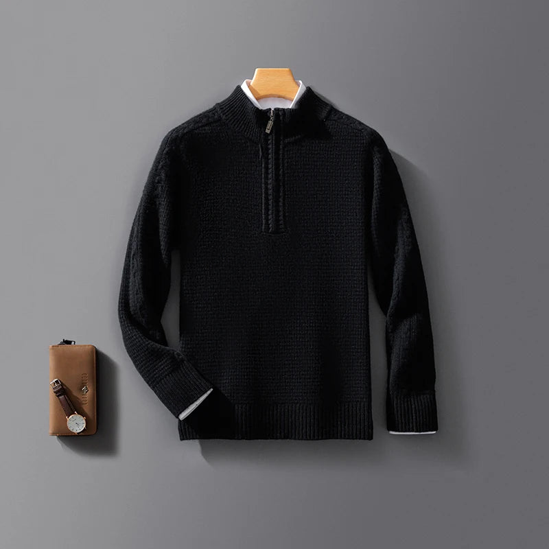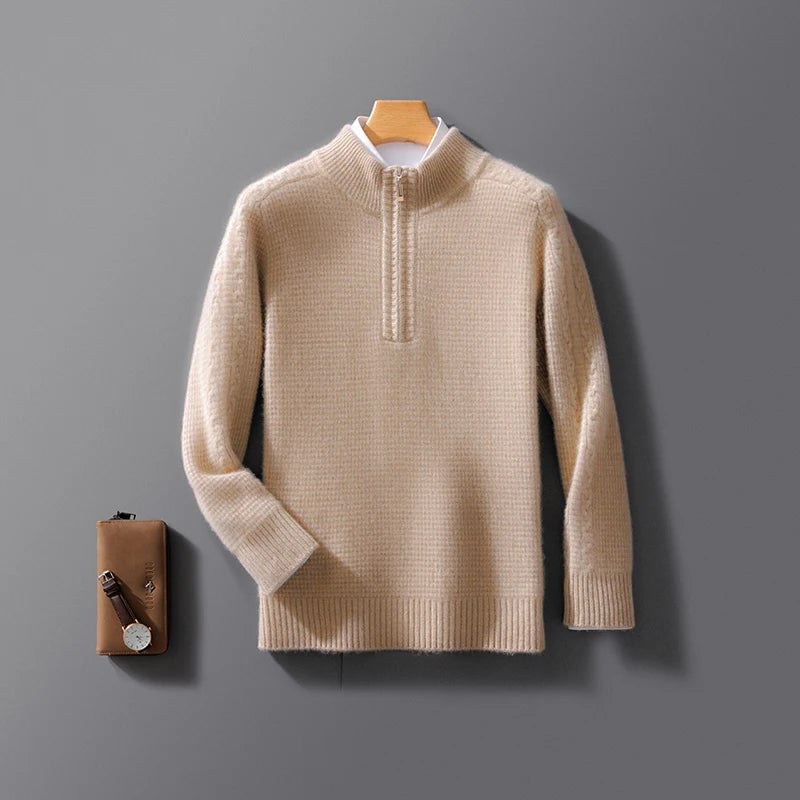 Crafted from buttery soft cashmere, the Monterey Cashmere Sweater offers lightweight warmth with a refined, quarter-zip design. Finished with a classic stand collar and minimalist detailing, it’s an effortless layer for both casual and refined looks.
